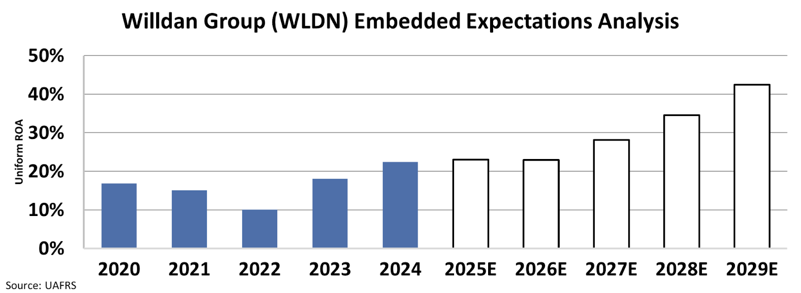 At the current stock price, the market predicts that the company’s Uniform return on assets (“ROA”) will rise to 42%, up from 22% last year.