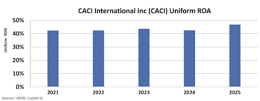 This year, CACI International delivered a Uniform return on assets (“ROA”) of 47% and achieved a Uniform asset growth of 14%.