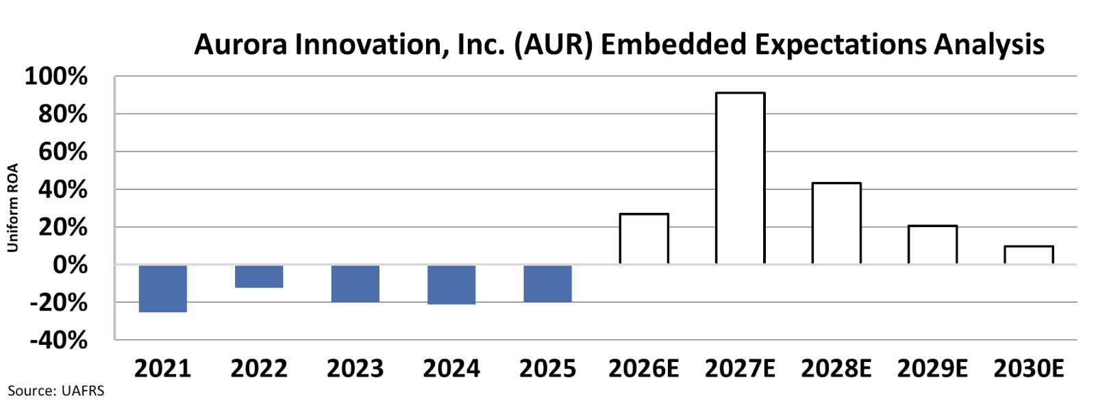 Since going public in 2021, Aurora has delivered negative returns. However, investors are betting that the firm’s Uniform return on assets will climb to 10% by 2030.