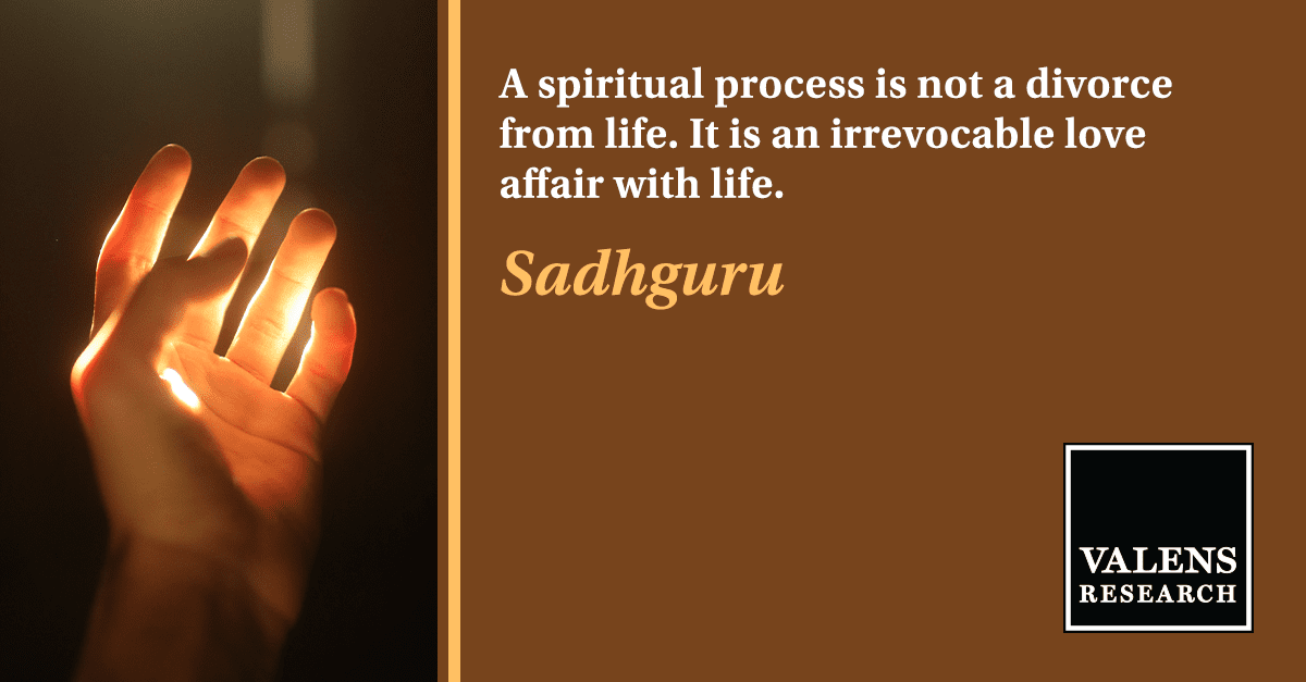 “A spiritual process is not a divorce from life. It is an irrevocable love affair with life.” – Sadhguru