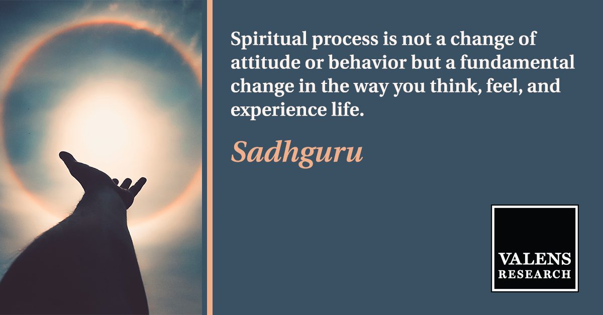 “Spiritual process is not a change of attitude or behavior but a fundamental change in the way you think, feel, and experience life.” -Sadhguru