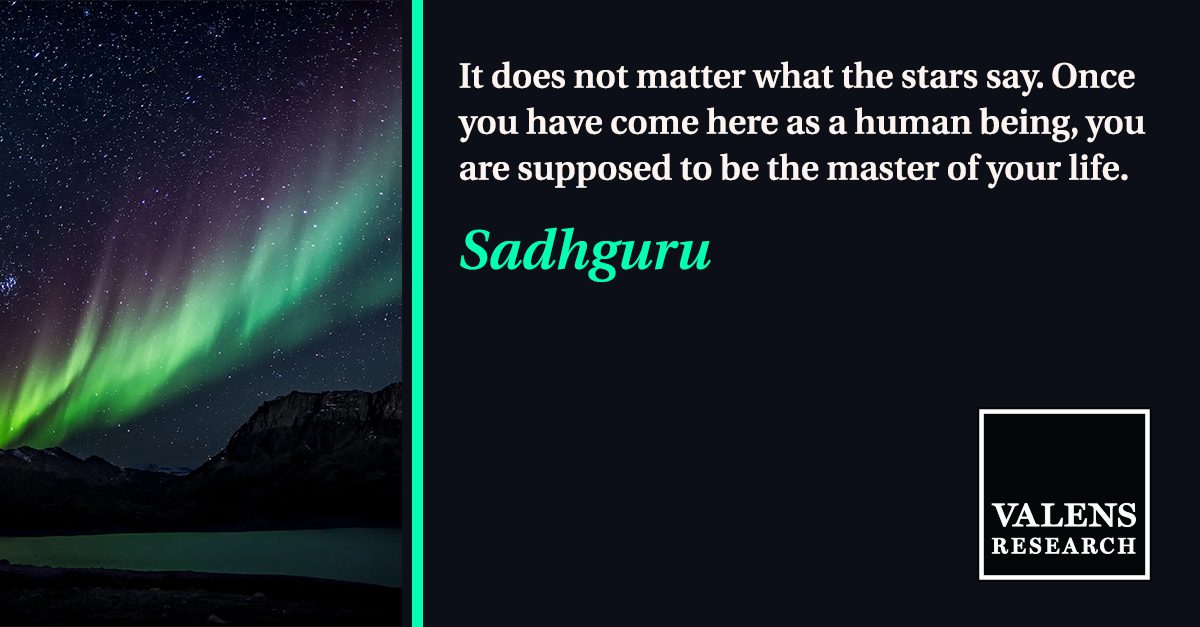 “It does not matter what the stars say. Once you have come here as a human being, you are supposed to be the master of your life.” – Sadhguru